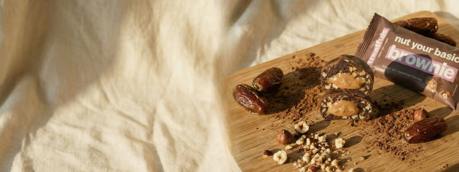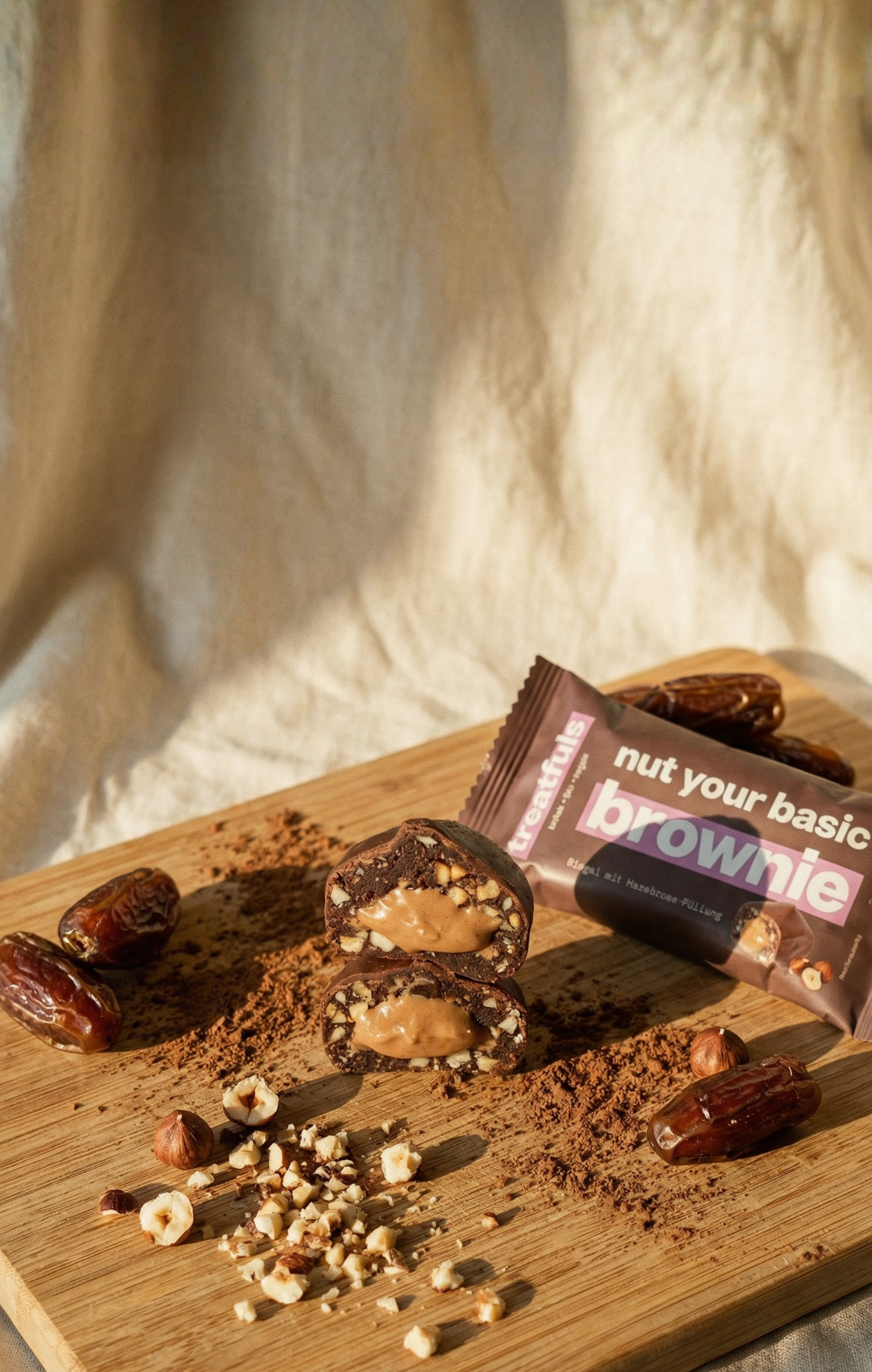 sondern der Snack, der zeigt, dass bio alles kann, nur nicht langweilig sein. Unsere treats sind reich an Ballaststoffen, ohne Industriezucker und nur mit der natürlichen Süße der Dattel gesüßt. 30% weniger Zucker als herkömmliche Süßigkeiten, aber so gut, dass es sich anfühlt wie eine Sünde. Ist es aber nicht! Fair-Trade-Schokolade außen, beste Bio-Zutaten innen, recycelbare Verpackung drumherum und ganz viel Herz, Leidenschaft und Spaß dazwischen.