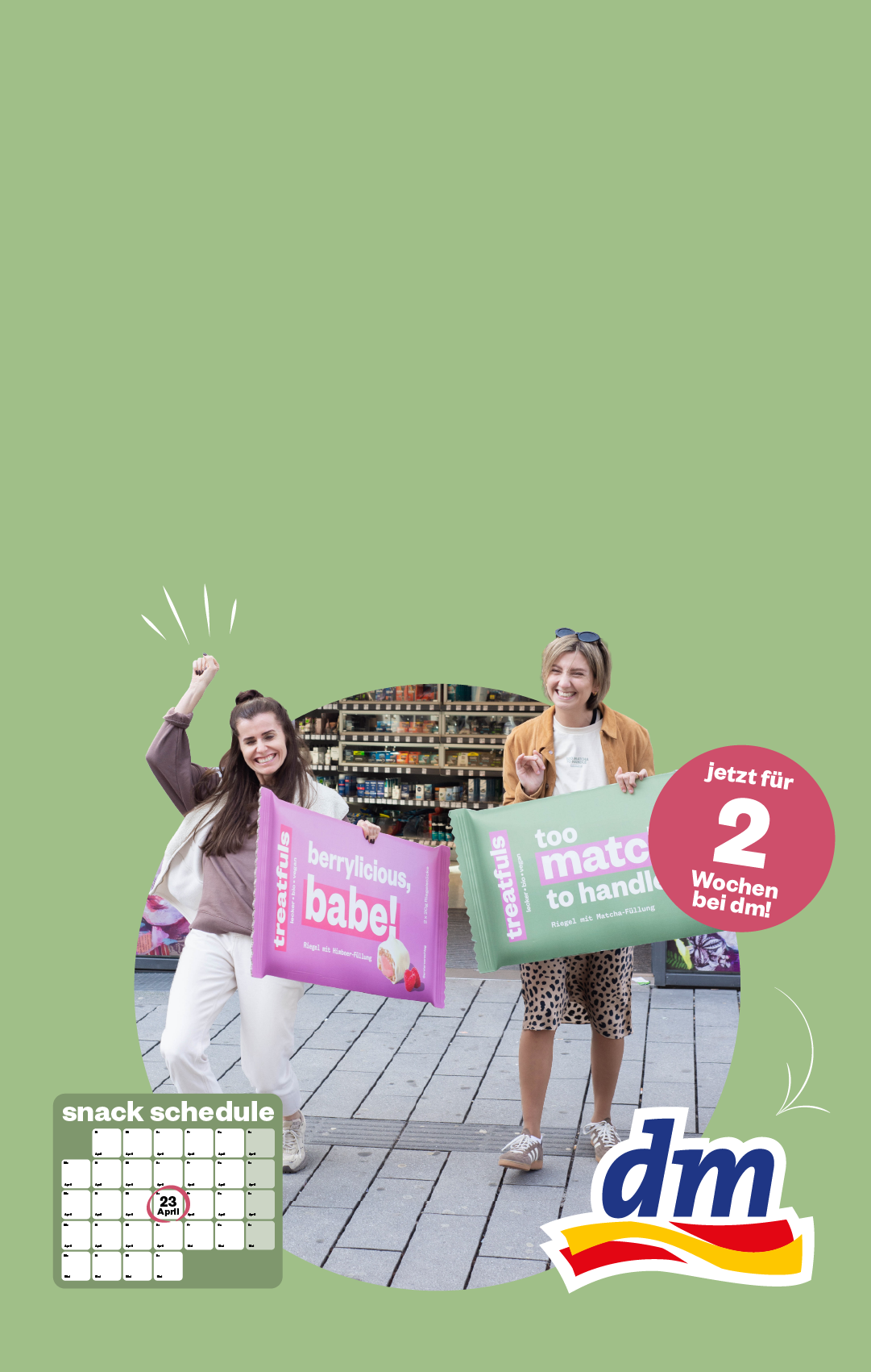sondern der Snack, der zeigt, dass bio alles kann, nur nicht langweilig sein. Unsere treats sind reich an Ballaststoffen, ohne Industriezucker und nur mit der natürlichen Süße der Dattel gesüßt. 40% weniger Zucker als herkömmliche Süßigkeiten, aber so gut, dass es sich anfühlt wie eine Sünde. Ist es aber nicht! Fair-Trade-Schokolade außen, beste Bio-Zutaten innen, recycelbare Verpackung drumherum und ganz viel Herz, Leidenschaft und Spaß dazwischen.