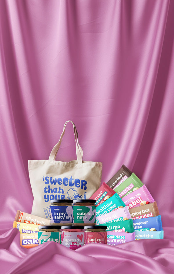 sondern der beste Snack, an dem sich dein Gaumen zu Lebzeiten erfreuen wird*. Unsere Treats sind hergestellt aus und geschichtet mit den besten Zutaten + umrandet von Fair-Trade Schoko und eingepackt in recyclebarer Verpackung + bedruckt mit witzigen Sprüchen + kreiert mit viel Herzblut + Leidenschaft + Unmengen von Spaß.