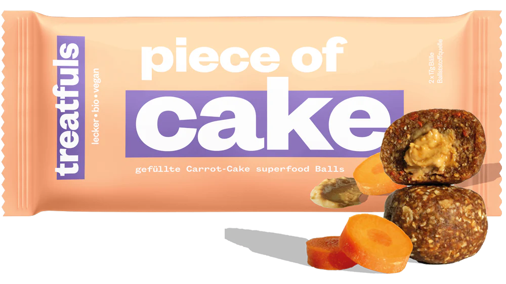 Bio-Haselnuss-Karotten-Snackkugeln mit Mandel-Zimt Füllung (2x17). Zutaten: Dattel*, Hafermehl* (glutenfrei), geröstete Haselnuss (9%)*, getrocknete Karotten (7,5%)*, Cashewmus*, Dattelsirup* (Dattel, Wasser), Mandelmus (2,5%)*, Zimt (0,9%)*, Muskatnuss*, Salz, Vanille*, Zitronen Öl*, Orange*. Kann Spuren von Gluten, Eiern, Milch, Schalenfrüchten, Sulfiten, Sesam und/oder daraus hergestellten Produkten enthalten.