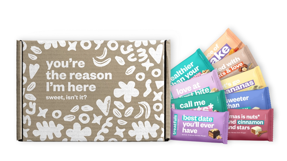 Bio-Mandel-Kokosnuss-Riegel mit weissem Reis-Kokos-Überzug. Mit Süßungsmittel. (2 x 20g). Zutaten: Geröstete MANDEL (27%)*, Dattel*, Kokosnuss* getrocknet (14%), Hafermehl* (glutenfrei), Reis-Kokos-Überzug (7%)*: [Kakaobutter*,**, Reisdrinkpulver*(Reis*, Sonnenblumenöl*), Kokosnussmilchpulver (20%)*, Süßungsmittel: Erythrit*, Orangenpulver*(Orangensaftkonzentrat*, Reismehl*)], geröstete CASHEWKERNE*, Vanille*, Meersalz. Kann Spuren von Gluten, Eiern, Milch, Schalenfrüchten, Sulfiten, Sesam und/oder daraus hergestellten Produkten enthalten. Trocken lagern und vor Wärme schützen.