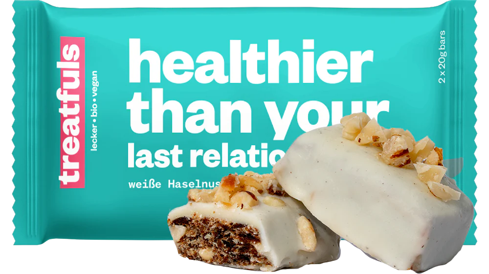 Bio-Haselnuss-Cashewkerne-Riegel mit weißem Reis-Kokos-Überzug. mit Süßungsmittel. (2 x 20g). ZUTATEN: Dattel*, HASELNUSS* (18%), Hafermehl (glutenfrei), Reis-Kokos-Überzug* (9%): [Kakaobutter*,**, Reisdrinkpulver*(Reis*, Sonnenblumenöl*), Kokosnussmilchpulver*, Süßungsmittel: Erythrit*, Orangenpulver* (Orangensaftkonzentrat*, Reismehl*)], geröstete CASHEWKERNE* (8%), Mandel*, Meersalz, Vanille*. Kann Spuren von Gluten, Eiern, Milch, Erdnüssen, Schalenfrüchten, Sulfiten, Sesam und/oder daraus hergestellten Produkten enthalten. Trocken lagern und vor Wärme schützen.