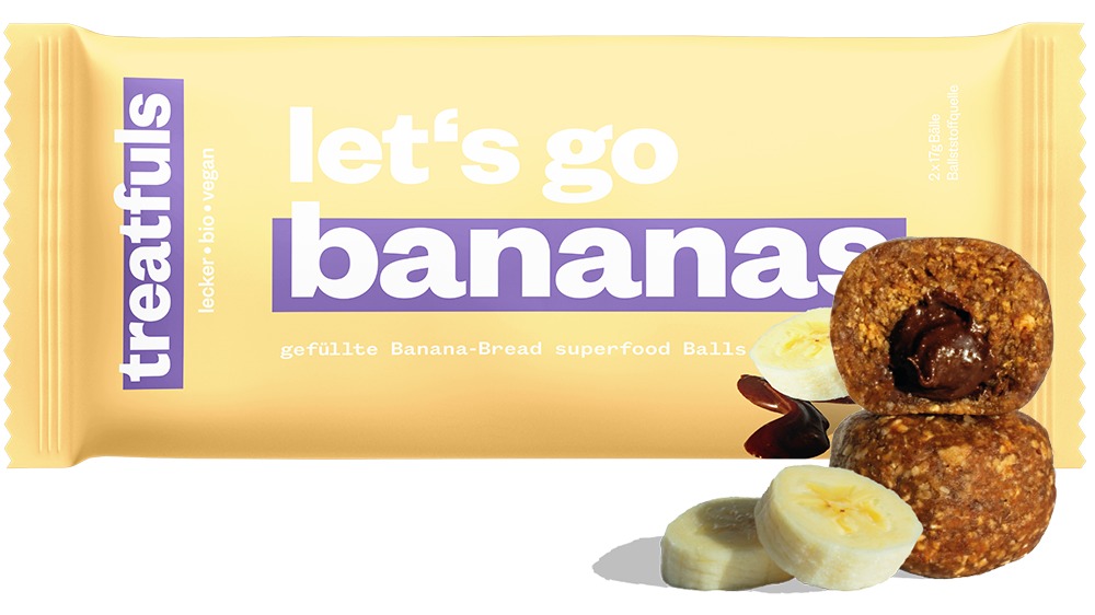 - 7x "Let's Go Bananas" Banana Bread Balls(2x17g): Inspiriert vom australischen Bananenbrot, vereinen diese Balls gefriergetrocknete Bananen und geröstete Cashewkerne in einer unwiderstehlichen Haselnuss-Kakao-Füllung.