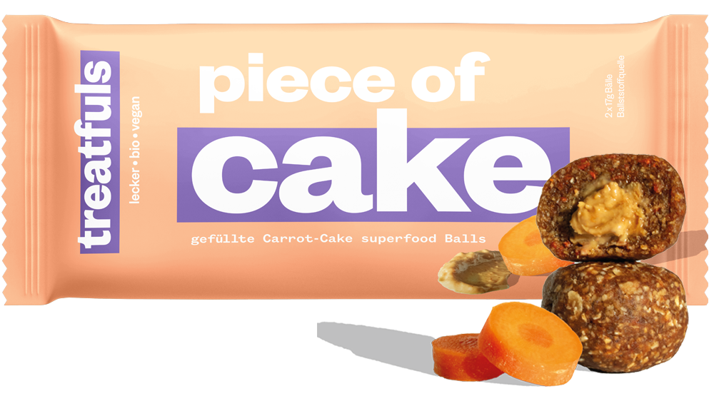 - 7x "Piece of Cake" Carrot Cake Balls(2x17g): Eine Hommage an den klassischen Karottenkuchen, vollgepackt mit Datteln, gerösteten Haselnüssen und einer cremigen Mandel-Zimt-Füllung.