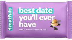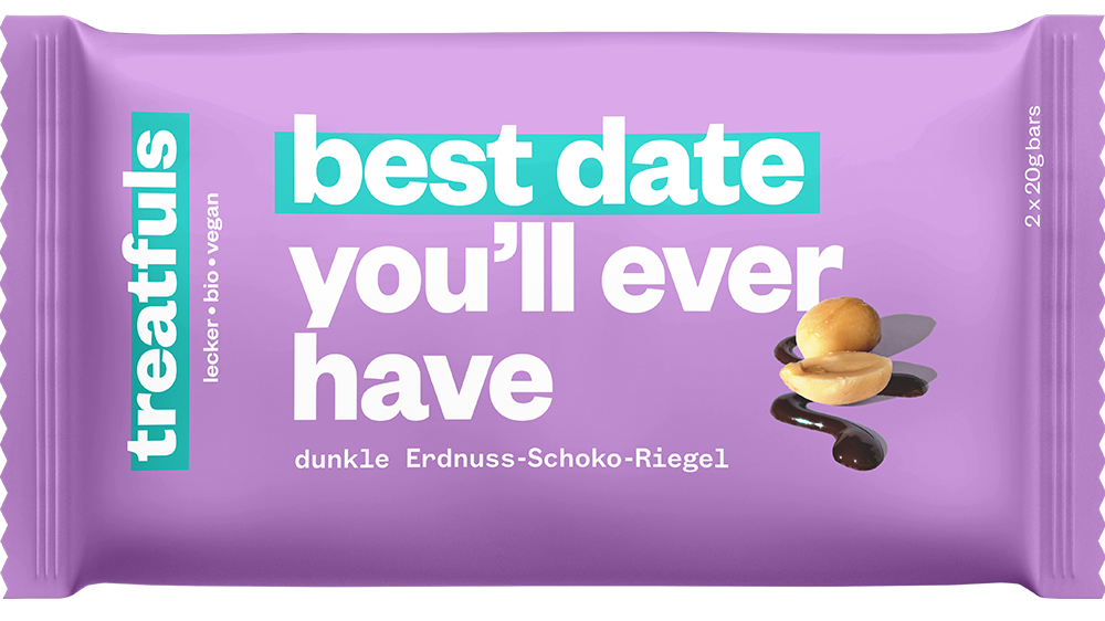 Salziges Dattelkaramell vereint mit crunchy Erdnüssen und ummantelt von dunkler veganer Schoki ohne Zusätze und ohne raffinierten Zucker, besser geht‘s nicht. Ach doch es geht noch besser, der volle Schoko-Geschmack kommt nämlich ganz ohne tierische Inhaltsstoffe und ohne Kompromisse aus, denn die treats sind Bio, komplett vegan und mit fairtrade Schoko.