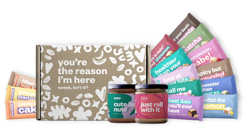 Zutaten: Dattelpaste, dunkle Schokoladenkuvertüre (15%) (Kakaomasse, Haferdrink, Kakaobutter), Haselnuss-Füllung (15%) [Haselnussmus (42%), Dattelpulver, Cashewmus, Kakaobutter], Dattelsirup, glutenfreies Hafermehl, Haselnuss (6,4%), Cashewkerne, Tapiokafaser, Mandeln, Kakaopulver, Meersalz, Vanilleextrakt. Kann Spuren von Gluten, Eiern, Milch, Schalenfrüchten, Sulfiten, Sesam und/oder daraus hergestellten Produkten enthalten. Trocken lagern und vor Wärme schützen.