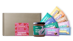 Bio-Haselnuss-Snackkugeln mit Haselnuss-Cashewkerne Füllung (2x17). Zutaten: Dattel*, Hafermehl* (glutenfrei), geröstete Haselnuss (14%)*, geröstete Cashewkerne (10%)*, Haselnussmus (5,6%)*, Dattelsirup* (Dattel, Wasser), Cashewmus(3,6%)*, Kakao Butter*, Salz, Vanille*. Kann Spuren von Gluten, Eiern, Milch, Schalenfrüchten, Sulfiten, Sesam und/oder daraus hergestellten Produkten enthalten.