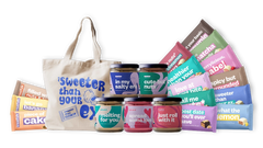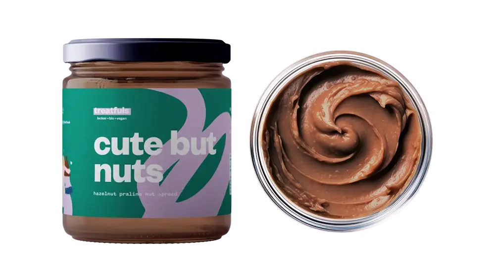 Zutaten: Dattelpaste, dunkle Schokoladenkuvertüre (15%) (Kakaomasse, Haferdrink, Kakaobutter), Haselnuss-Füllung (15%) [Haselnussmus (42%), Dattelpulver, Cashewmus, Kakaobutter], Dattelsirup, glutenfreies Hafermehl, Haselnuss (6,4%), Cashewkerne, Tapiokafaser, Mandeln, Kakaopulver, Meersalz, Vanilleextrakt. Kann Spuren von Gluten, Eiern, Milch, Schalenfrüchten, Sulfiten, Sesam und/oder daraus hergestellten Produkten enthalten. Trocken lagern und vor Wärme schützen.