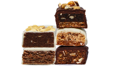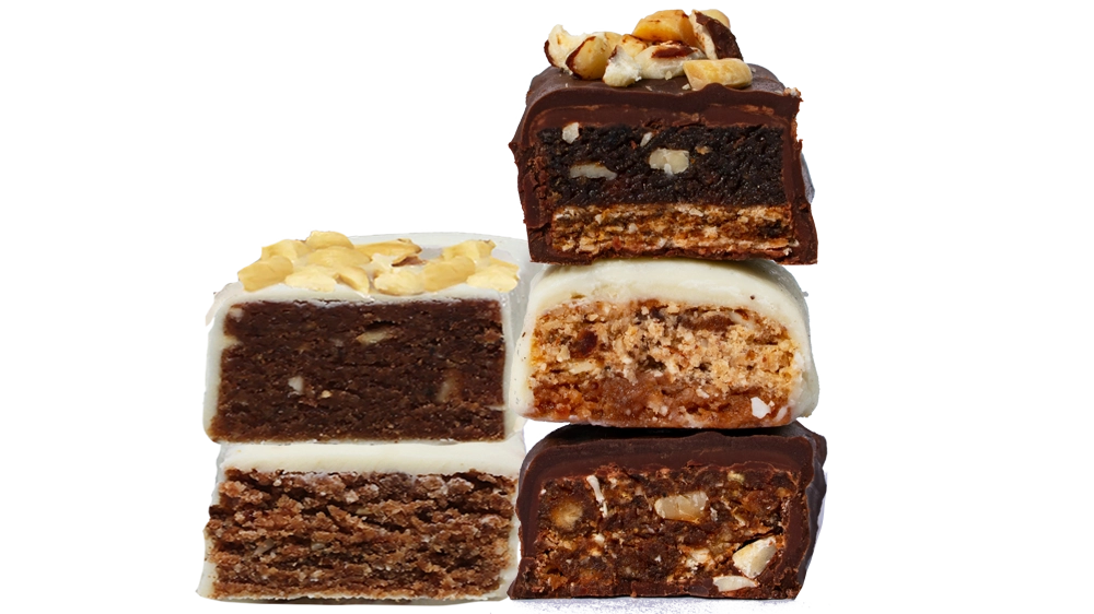 Bio-Haselnuss-Cashewkerne-Riegel mit dunkler Schokoladen-Kuvertüre (mit einem Kakaoanteil von mindestens 75%). mit Süßungsmittel. (2 x 20g). ZUTATEN: Dattel*, HASELNUSS* (18%), Hafermehl (glutenfrei), dunkle Schokoladenkuvertüre* (9%) [Kakaobutter*,**, Süßungsmittel: Erythrit*, Kakaobutter*,**], geröstete CASHEWKERNE* (8%), Mandel*, Kakao gemahlen*,**, Meersalz, Vanille*.